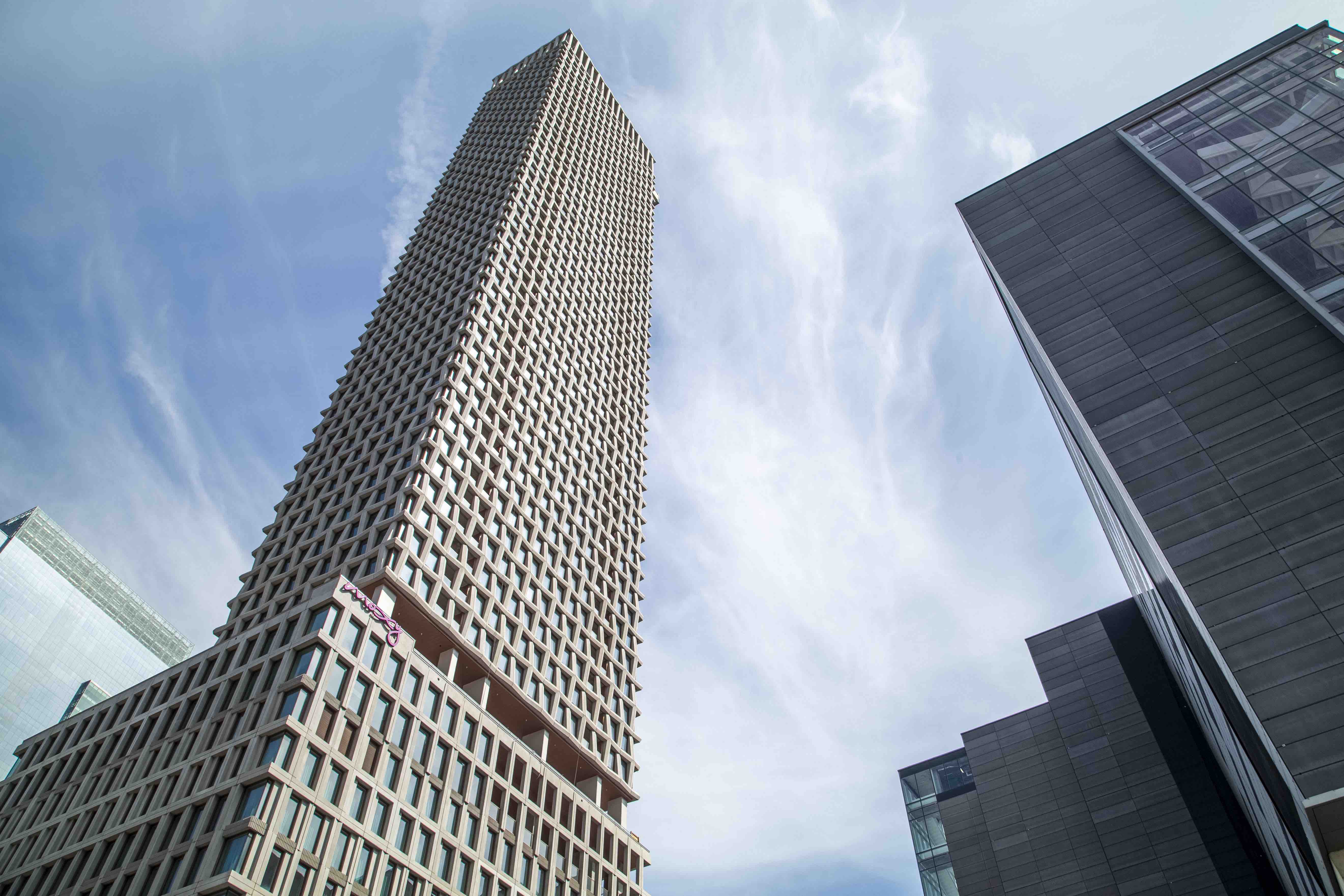 The new tower comprises 64 floors and a parapet; altogether, it consists of 1,806 panels and 3,767 factory-installed windows (including 552 corner windows and 3,215 standard windows with impressive dimensions of 1,375 mm by 2,400 mm).