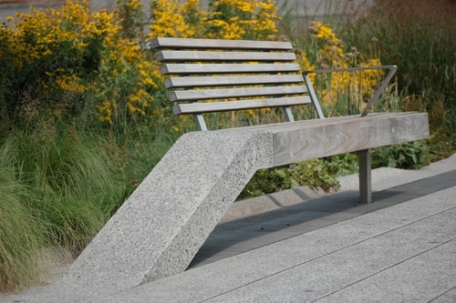 C'est au chapitre des promenades et du mobilier urbain que le béton préfabriqué se démarque, ramenant alors le matériau à sa forme la plus organique.